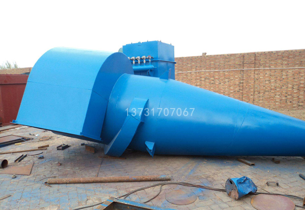 含塵氣體從進口處切向進入后,氣體在獲得旋轉(zhuǎn)運動的同時,氣流分成上、下分開,形成雙旋渦運動,粉塵在排氣底部即雙旋渦的分界處產(chǎn)生強烈的分離作用。較細(xì)較輕的塵粒由上部旋渦氣流帶往上部,在頂蓋下面形成強烈旋轉(zhuǎn)的灰環(huán),產(chǎn)生塵粒的聚集,并被從特設(shè)的旁路分離室上部洞口引出,經(jīng)旁路分離室下部螺旋槽,從除塵器外壁回風(fēng)口切向引入除塵器筒體下部與內(nèi)部氣流匯合,粉塵被分離而落入灰斗。另一部分較粗重的粉塵顆粒則在下旋渦氣流帶動下,沿除塵器下段經(jīng)由上旋渦氣流的類似過程,將粉塵分離并進入灰斗。