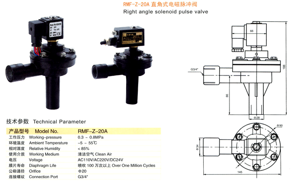 此閥的進(jìn)氣口直接安裝在氣包上,故稱為淹沒(méi)式脈沖閥或直角式脈沖閥。