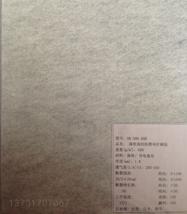 我廠生產的防靜電針刺過濾氈及除塵布袋其性能指標在O處于領先水平,經過權威部門測試,物理性能高于O標準。