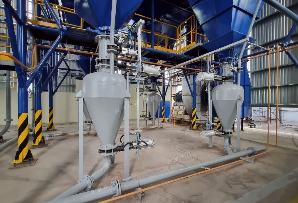 當(dāng)布袋上的粉塵逐漸變厚,阻力增大時,除塵器脈沖閥將向布袋內(nèi)吹入壓縮空氣,布袋會膨脹并劇烈振動,布袋上的塵粒落入灰斗中。落入灰斗的灰渣由螺旋輸送機(jī)收集至儲灰筒。